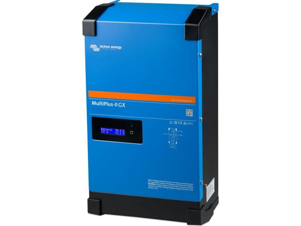 Victron MultiPlus-II GX 48V/5000VA/70A-50AMultiPlus-II GX je výkonný DC-AC hybridní měnič/nabíječ s čistě sinusovým výstupem, integrovanou adaptivní nabíječkou baterií a ultra rychlým transferovým přepínačem zdroje napájení (baterie/externí AC zdroj).