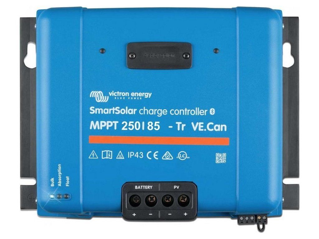 Victron SmartSolar 250/85-Tr VE.Can MPPTRobustní a rychlý MPPT regulátor s VE.Can pro náročné podmínky s napětím panelů až 250 V, nabíjecí proud 85 A. Baterie 12/24/48 V, FV max. 1200/2400/4900 Wp. Vestavěné Bluetooth a konektor pro zásuvný displej.