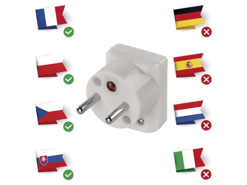 Klasická vidlice pro pohyblivý prodlužovací přívod s praktickou možností otočení vnitřního zapojení.
