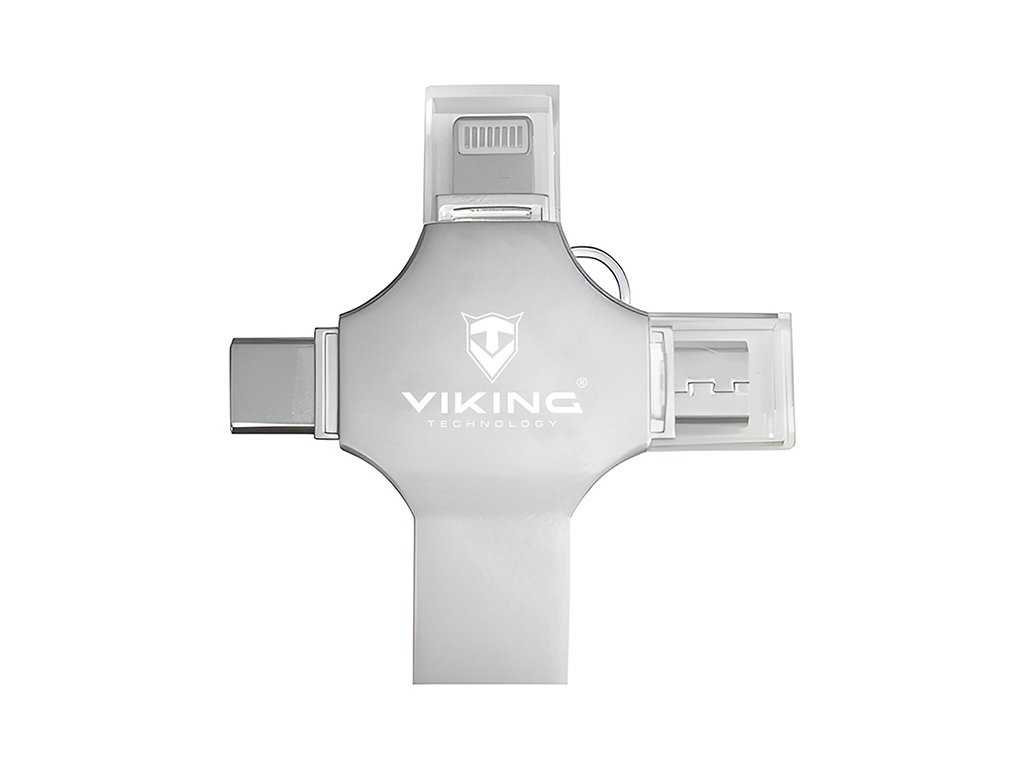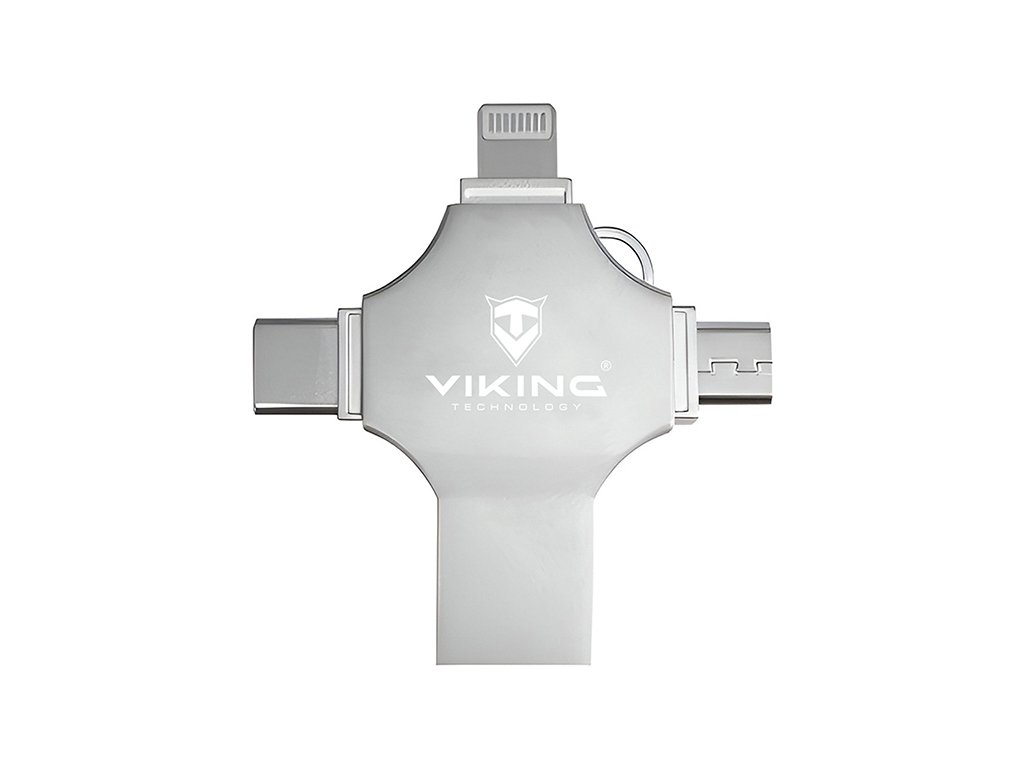 Viking USB flash disk 16GB 4v1 • 4 konektory: USB-A, USB-C, Micro USB, Lightning • Varianta 16 GB • podpora FAT32 a exFAT • vhodný pro iOS, Android, PC i Mac • Kompaktní a lehké provedení • hmotnost 13?g