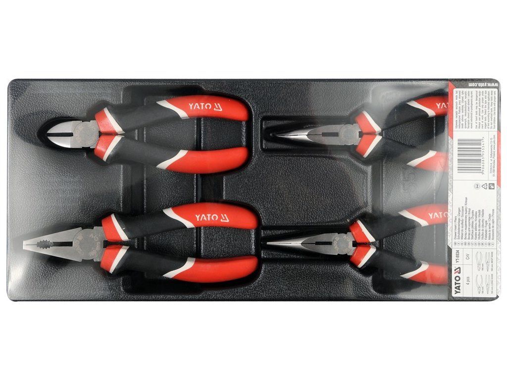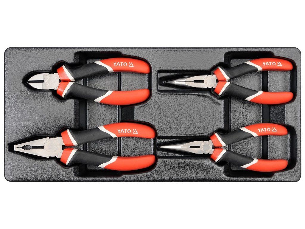 Sada 4 kusů kleští z CrV oceli. Kleště jsou přehledně srovnány ve vložce do zásuvky z PVC.