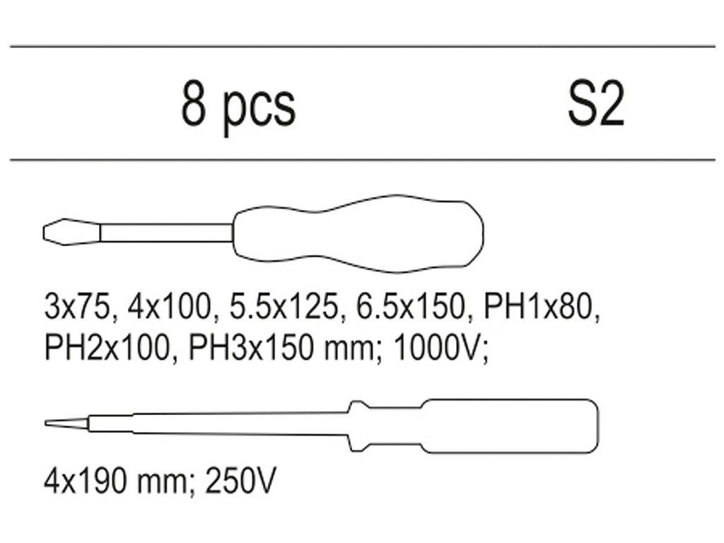 Obsah balení: Zkoušečka: 4x190 mm Plochý: 3x75; 4x100; 5,5x125; 6,5x150 mm Křížový: PH1x80; PH2x100; PH3x150 mmDoplňkové parametry