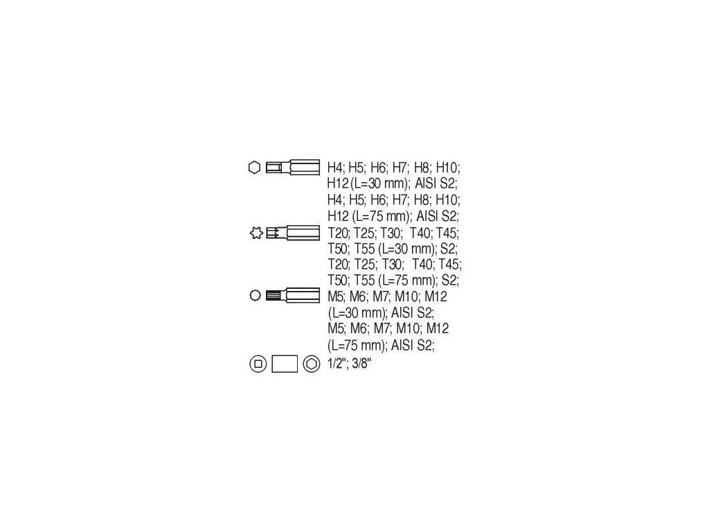 | Bit imbus 75 mm | H4, H5, H6, H7, H8, H10, H12 |