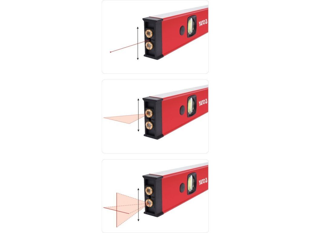 Úhel testovaný nebo nastavený uživatelem může být posouván dále pomocí úrovně laseru umístěného v čele. To umožní promítnout body, spojnice, nebo čáry protínající se v pravých úhlech.