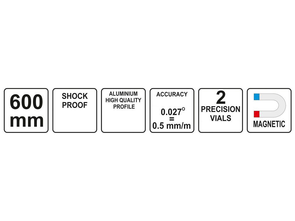 Precizní hliníková vodováha s magnetickými vlastnostmi, s přesností 0,027° (0,5mm/m).