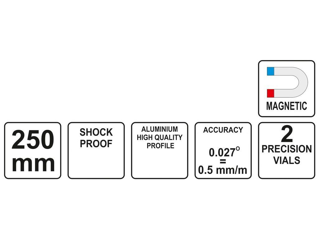 Hliníková vodováha trapézová s magnetickými vlastnostmi, s přesností 0,027° (0,5mm/m).