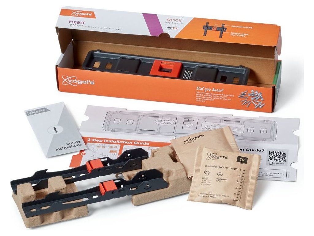 Nástěnné držáky televizorů QUICK se velmi snadno a rychle instalují díky jedinečnému systému EasyFIX™. Televizor můžete na stěnu připevnit ve třech jednoduchých krocích a užívat si jej již během maximálně 20 minut. Součástí balení je vrtací šablona, šrouby a hmoždinky Fischer® DuoPower. Všechny kroky instalace jsou jasně a stručně vysvětleny v přiloženém rychlém návodu k instalaci. Podrobný návod k použití si můžete prohlédnout také online nebo se podívat na instalační video. S bezplatnou aplikací DrillRight™ AR si snadno vyznačíte první vrtací otvor na stěně. Pak stačí jen přiložit vrtací šablonu. Praktické také je, že váš nástěnný držák televizoru QUICK Fixed má zabudovanou vodováhu. Montáž televizoru do perfektní roviny je proto velmi snadná.