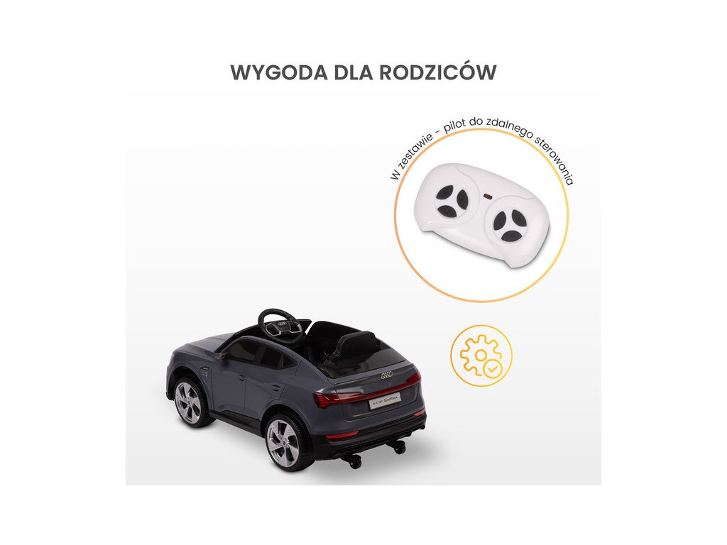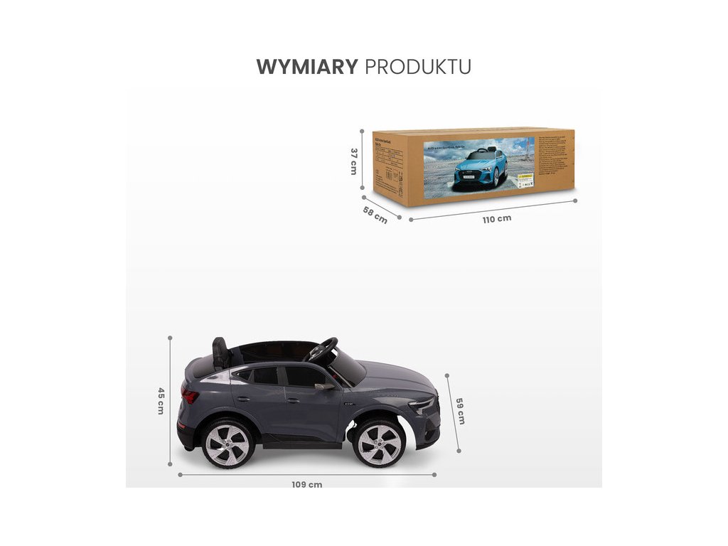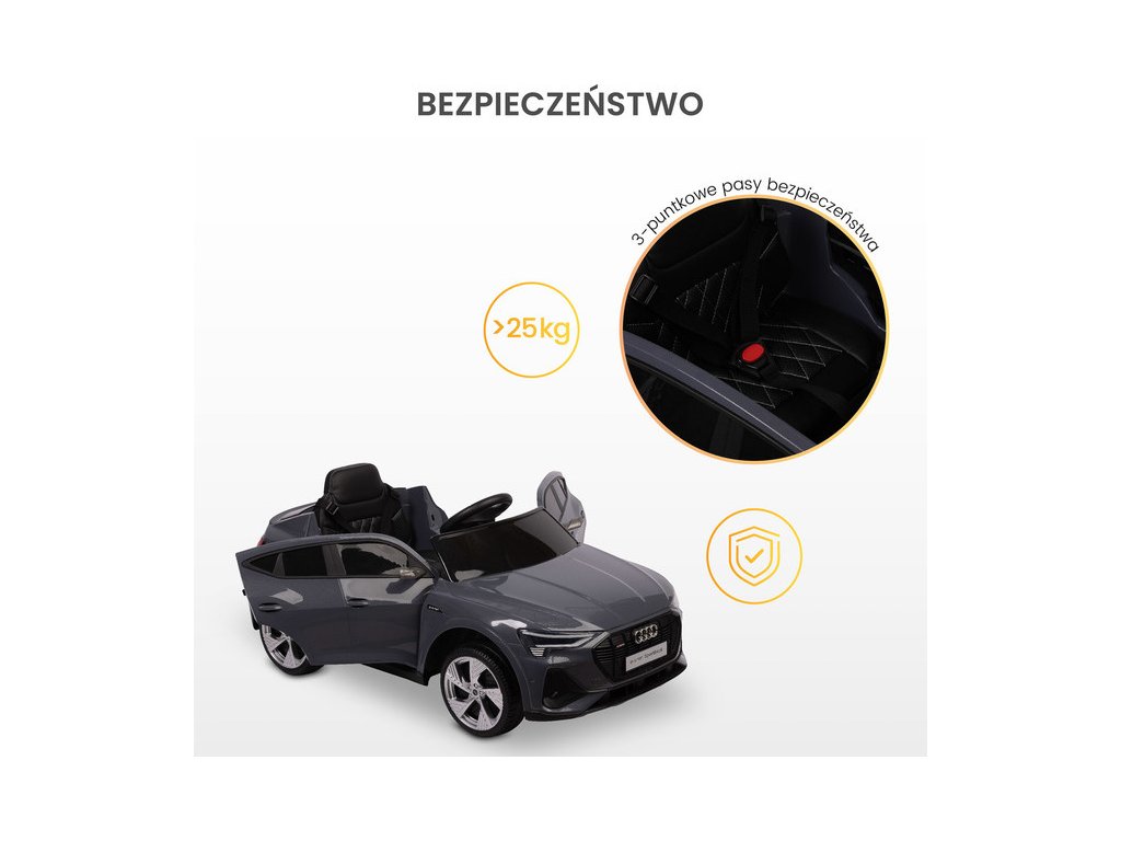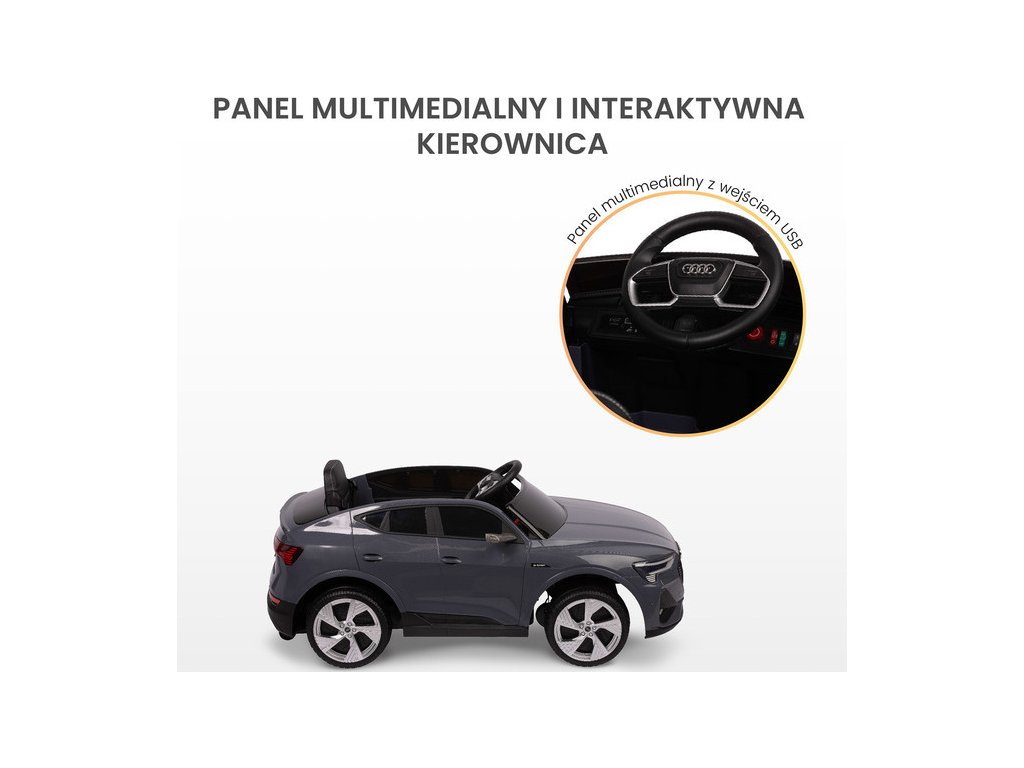 Audi E-tron Sportback je licencované vozidlo na baterie značky Toyz, které kombinuje elegantní design s dynamikou elektrického pohonu. Model se vyznačuje charakteristickou linií karoserie Audi, moderními úzkými zrcátky a propojenou zadní světelnou lištou. Vnitřní silnou stránkou modelu E-tron Sportback je pohon 4 kol s motory 45 W. Jsou napájeny 7 Ah baterií. Pohodlí a bezpečnost hry zajišťují: zadní tlumiče, EVA pěnová kola, sedačka z ekokůže, 3-bodové pásy, pomalý rozjezd, dva rychlostní režimy a automatická brzda. Autíčko na baterie má i funkce pro rodiče: dálkové ovládání a zatahovací kolečka pro snadné přenášení.