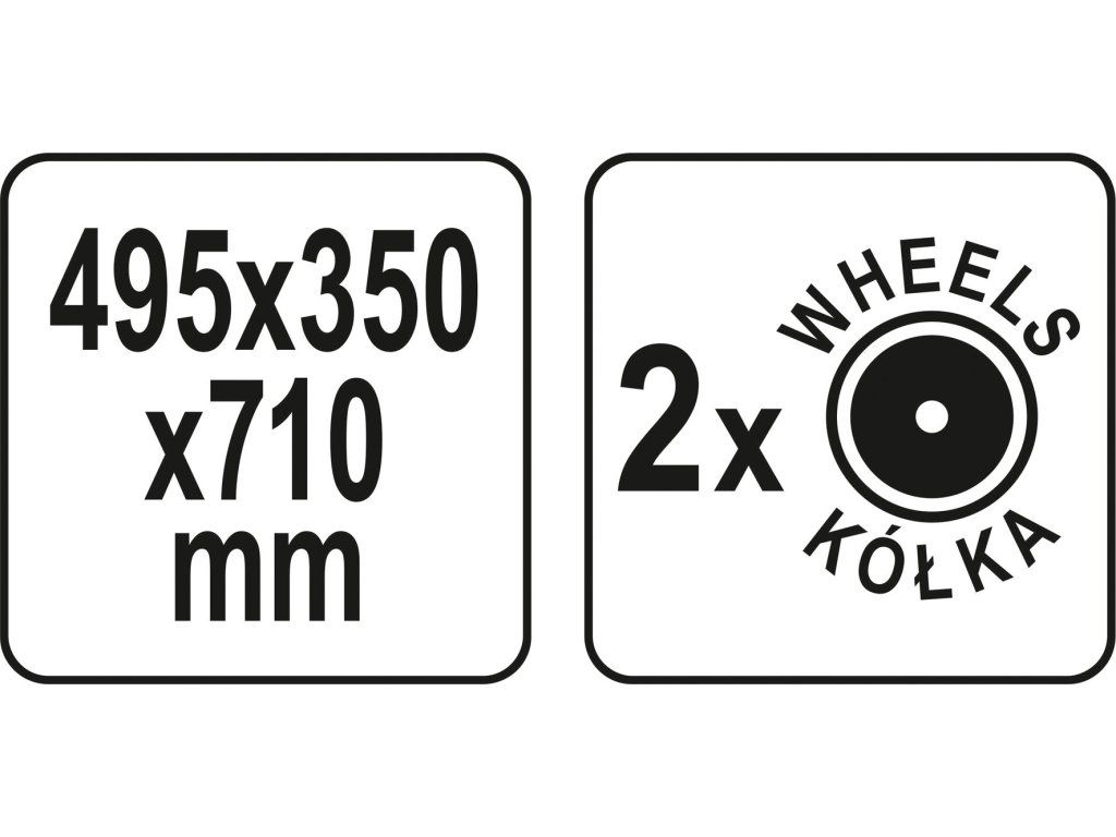 Vyrobeno z plastu s rozměry 49,5 x 35 x 71 cm odolného proti mechanickému poškození.