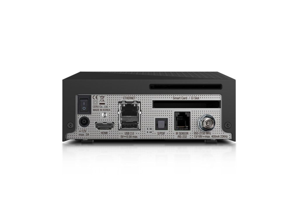 Digitální satelitní přijímač pro programy UHD a HD TV a rozhlasové programy. Obsahuje jednu čtečku karet a také CI slot pro vložení dekódovacího modulu. Srdcem přijímače je procesor ARM DualCore s výkonem 2x 1500 MHz. Flash paměť má úctyhodných 4 GB eMMC a operační paměť RAM 2GB DDR4. Tuner je jeden, umožnuje příjem v normách DVB-S, DVB-S2 a také DVB-S2X. Jde o semi tuner, takže v rámci jedné frekvence (trasnpondéru), dokáže nahrávat více stanic současně.