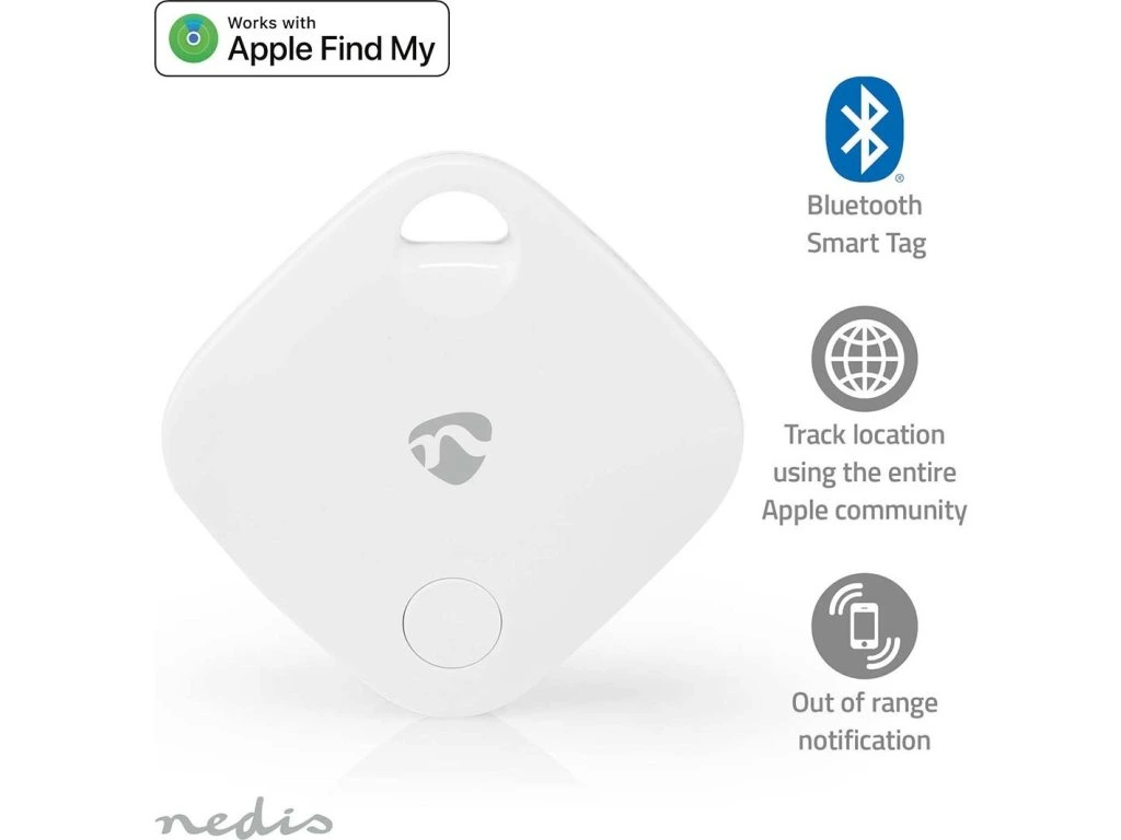 Chytrý lokátor Nedis BTTAG10WT pro snadné a rychlé nalezení osobních předmětů, jako jsou klíče, peněženka, taška apod. Zařízení podporuje bezdrátové rozhraní Bluetooth a operační systém iOS, a tím také jednoduchou lokalizaci předmětů na větší vzdálenosti pomocí aplikace „Najít“ od společnosti Apple.