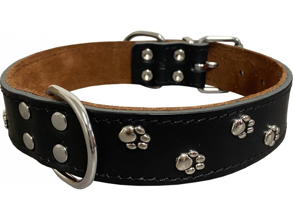 Obojek je vyroben z velmi kvalitní hovězí kůže. Pro maximální pevnost je podlepen koženým bombírem a po obvodu obšit režnou nití. Vzhled zajistí řada tlapek. Pro připnutí jsou obojky vybaveny dvěmi silnými svařovanými déčky. Jsou vhodné pro střední a velká plemena.