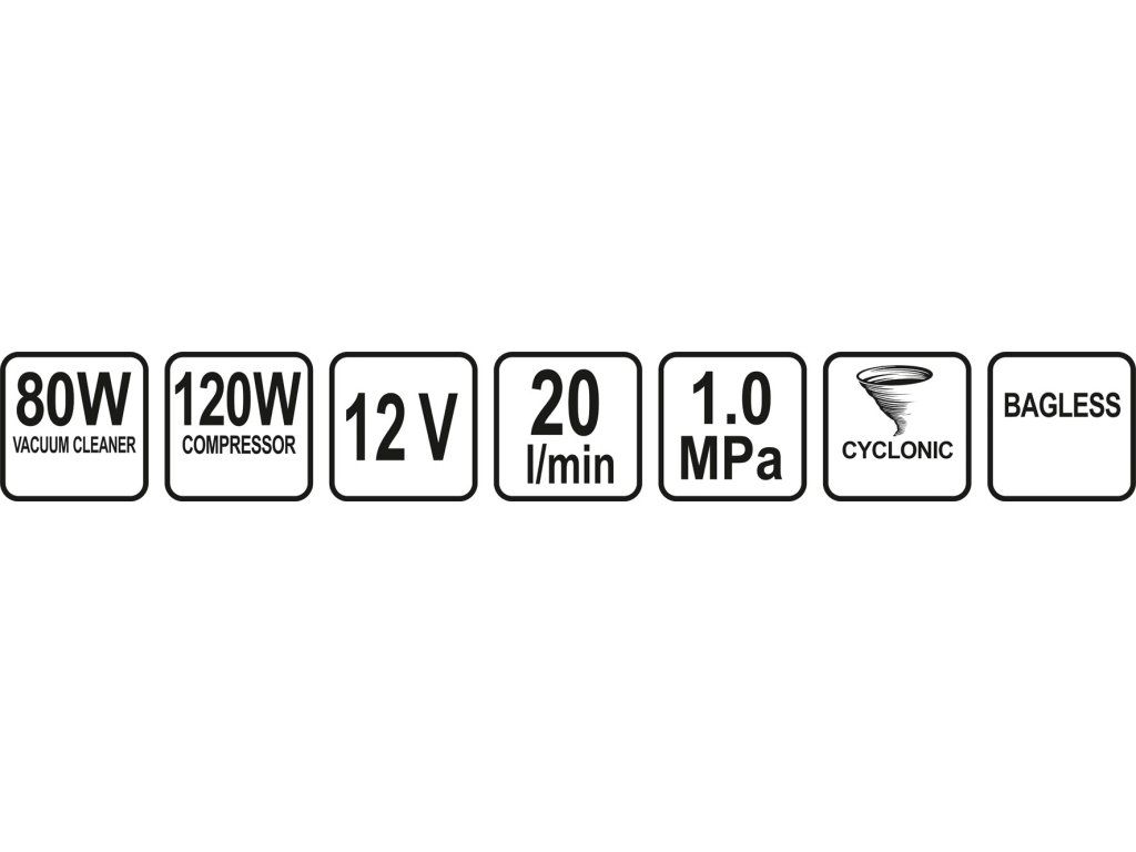 Vysavač lze použít i jako kompresor. Díky zabudovanému manometru je vhodný zejména pro huštění pneumatik, ale i dalších předmětů pomocí jednoho ze tří přiložených adaptérů.