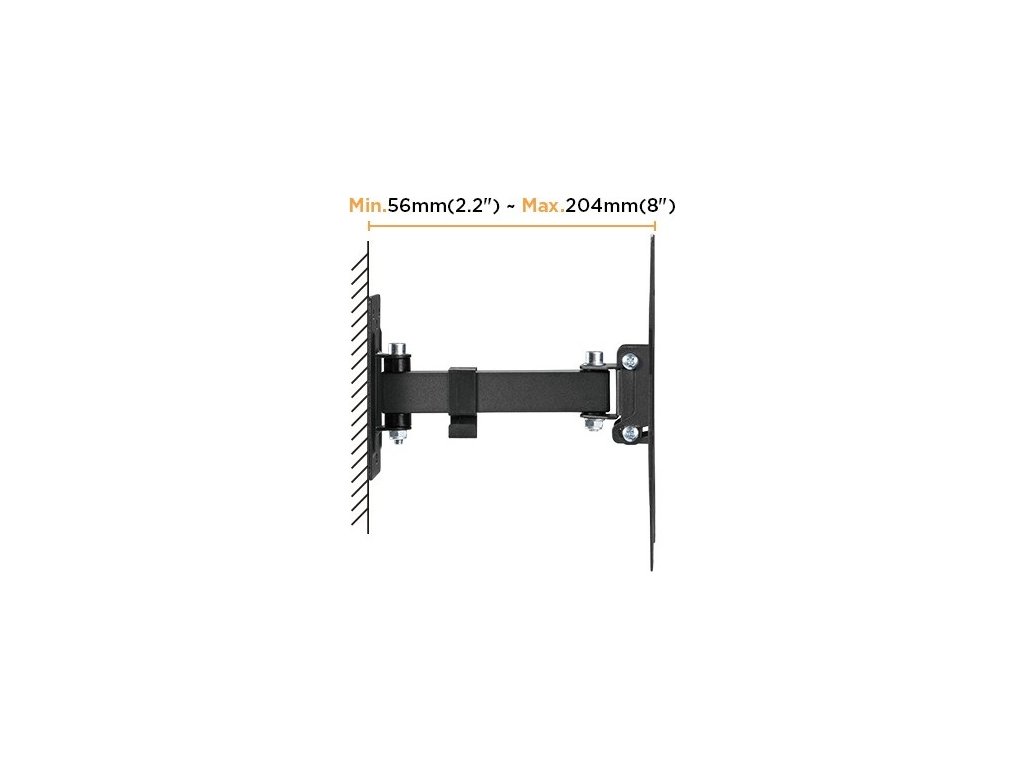 Výsuvný nástěnný držák LPA68-221 je určen pro instalaci TV s plochou obrazovkou s úhlopříčkami od 23“ do 43“. Má robustní výsuvnou konstrukci, díky níž unese TV o hmotnosti až 30 kg, zároveň je možné nastavit vzdálenost TV od stěny v rozsahu 56 mm až 204 mm. Samozřejmostí je pak také velký rozsah polohování. Držák umožňuje snadné naklápění TV v rozsahu +5°~-8° a natočení do stran v rozsahu +90°~-90°, což zaručuje pohodlné sledování z libovolného místa v místnosti. Integrovaná svorka na kabely udržuje kabely uspořádané a chráněné.