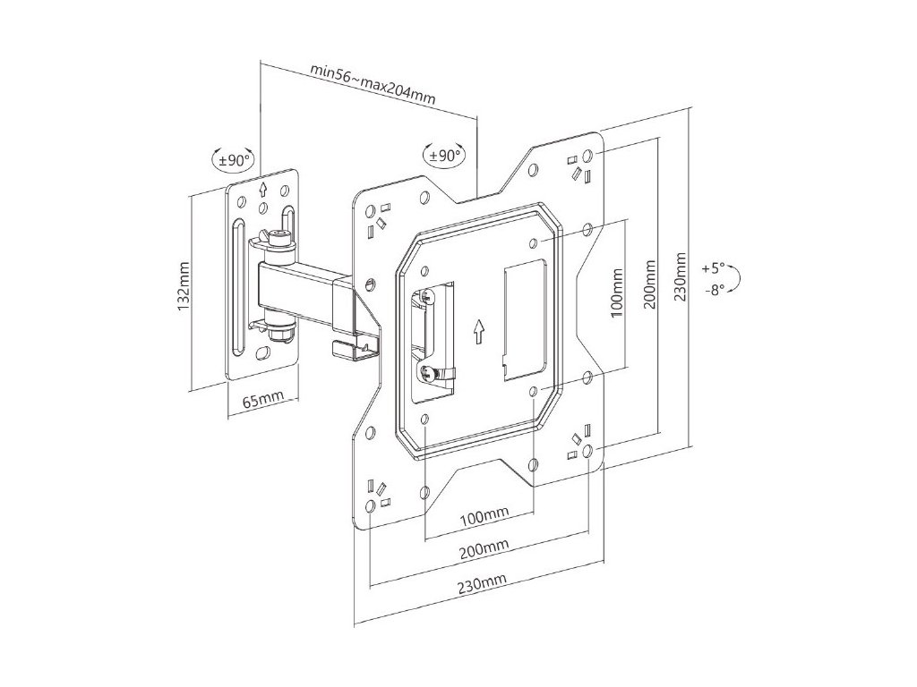 • Výsuvná konstrukce s možností stranového natočení v rozsahu +90°~-90°