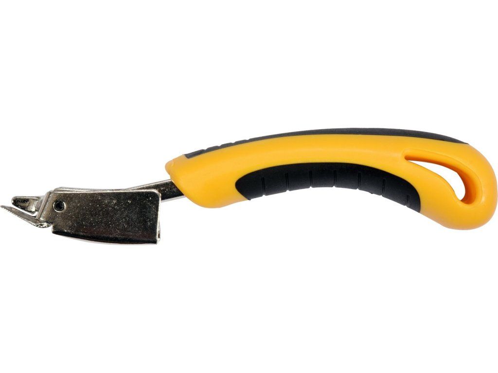 Vytahovač sponek je vyroben z kovu a má ergonomickou dvoukomponentní rukojeť.