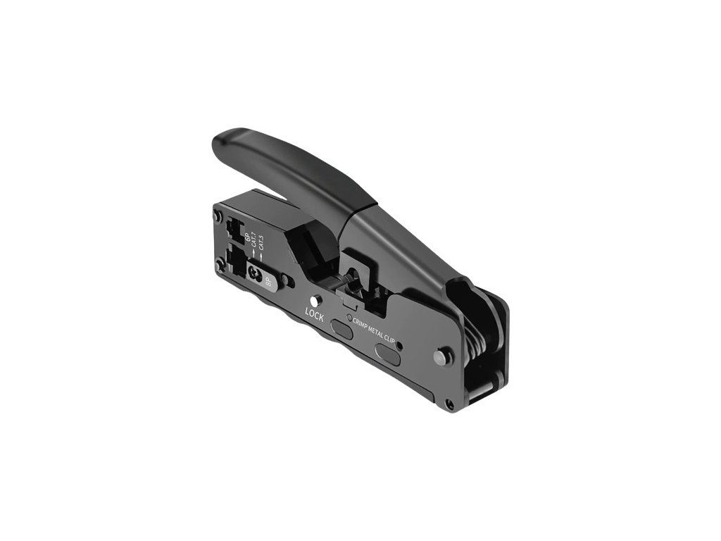 Krimpovací kleště malých rozměrů, které zpříjemní práci technikům. Vhodné pro konektory Cat7, Cat6, Cat5e, typu RJ45, RJ12,včetně stíněných konektorů STP s čelistí pro nacvaknutí stínění (klipu) síťových kabelů do konektoru STP.