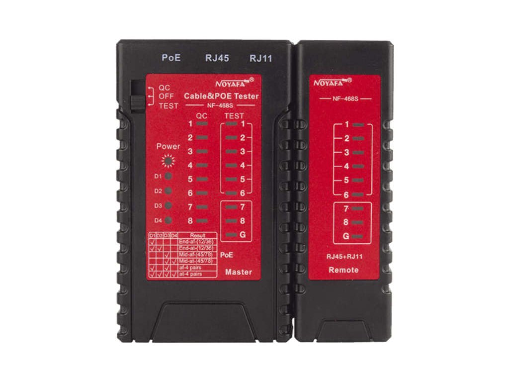 Tester kabelů WSNF468S RJ45, RJ11 a poe napájení dle 802,3AT a 802,3AF, Midspan, Endspan, UTP/STP, Cat5e, Cat6, Cat7 měření stavu UTP kabelů a POE napájení a test kvality konektorů
