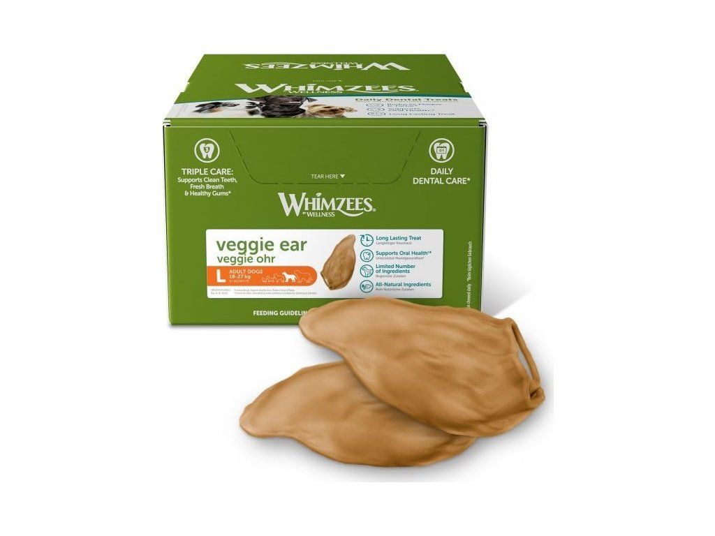 Skvělý vegetariánský dentální pamlsek pro psy ve tvaru ucha. Tvar pamlsku je uzpůsobený tak, aby ho pes co nejvíce žvýkal, díky čemuž si zuby krásně vyčistí a skvěle se zabaví. Tyto dentální pamlsky jsou vyrobeny z čistě přírodních složek, jedná se tak o zdravý pamlsek, který napomáhá odstraňovat zubní plak.