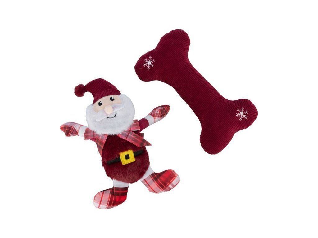 Xmas GIFT SET - vánoční dárková sada hraček (Santa, kost), 30 cm, plyš/látka