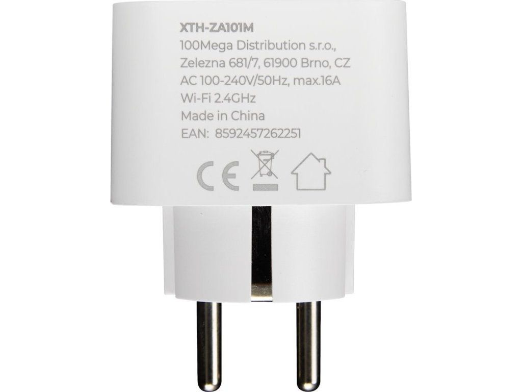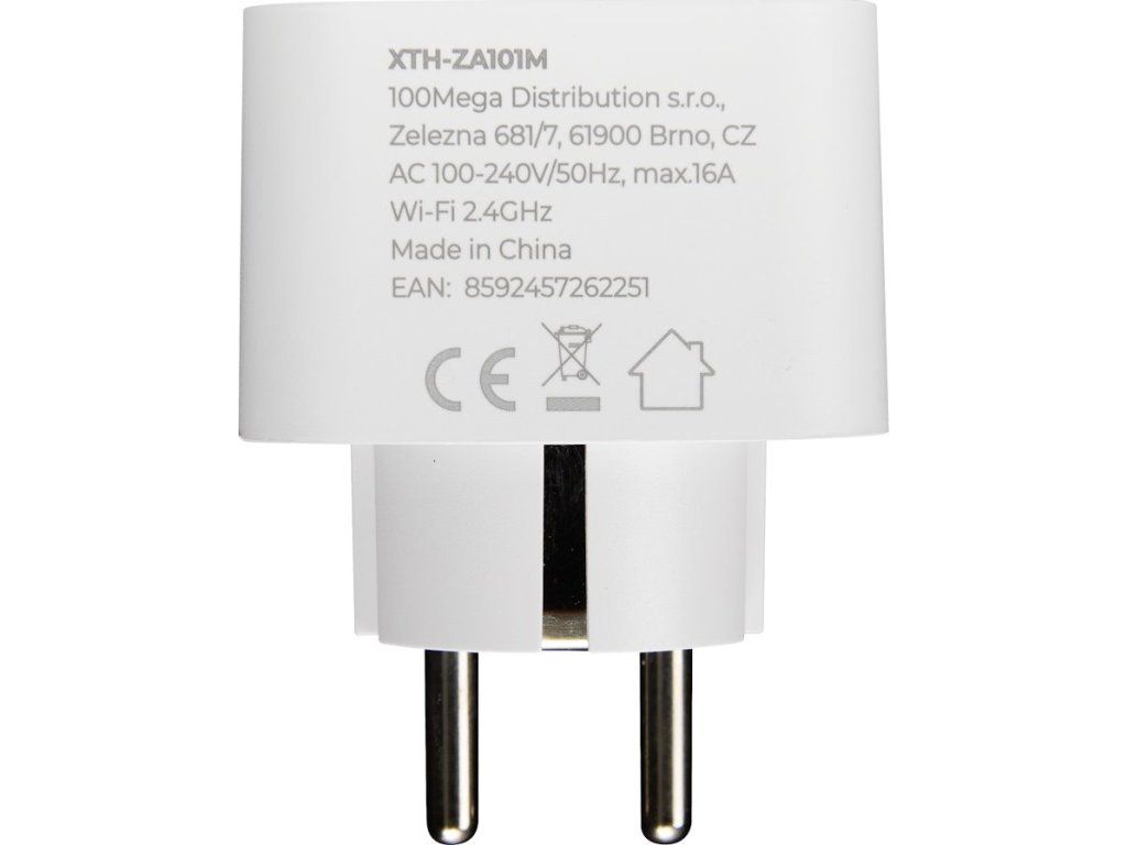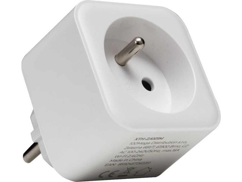 Xtend Home chytrá zásuvka s měřením 2ksChytrá Wi-Fi zásuvka sloužící k měření příkonu připojených zařízení a jejich zapínání či vypínání. Zásuvka funguje s aplikací Tuya Smart a podporuje i aplikace třetích stran Alexa hlasový asistent a Google domácí asistent.
