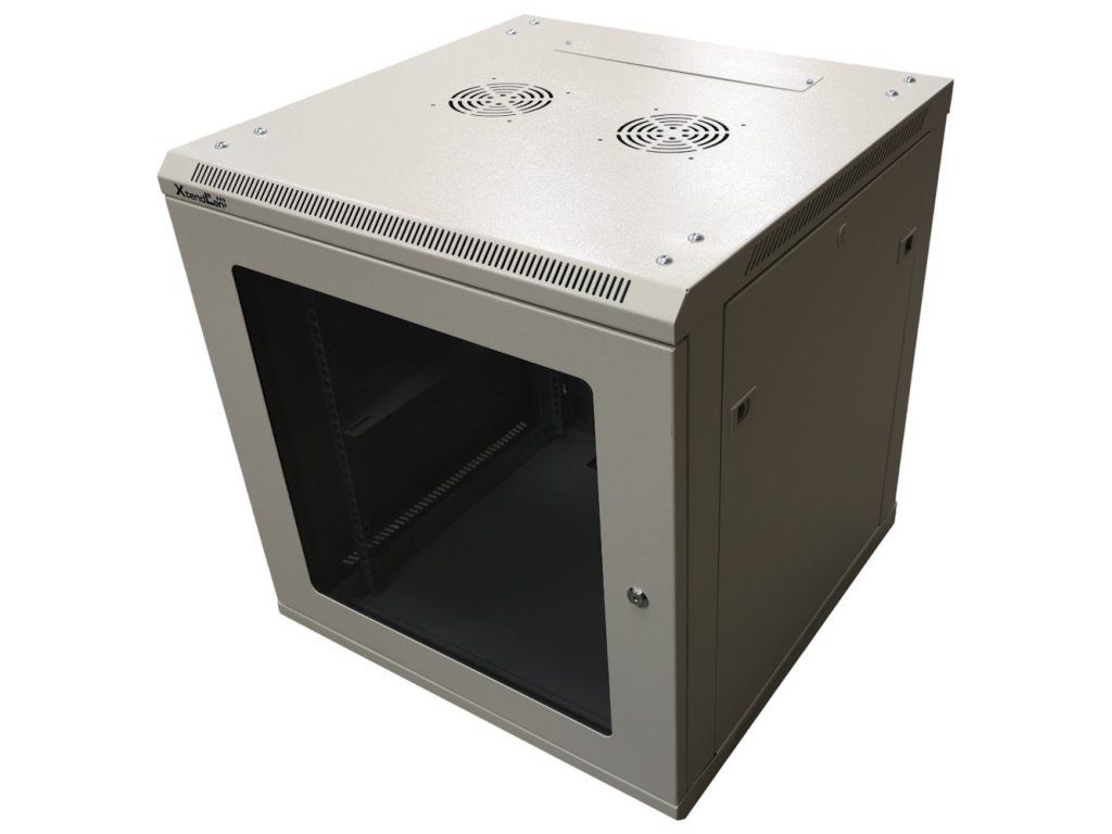 XtendLan 12U/600x600, na zeď, jednodílný, složený, skleněné dveře, šedý-osobní odběr,bez krabice