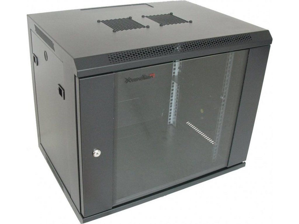 XtendLan 9U/600x450, na zeď, jednodílný, skleněné dveře, černý