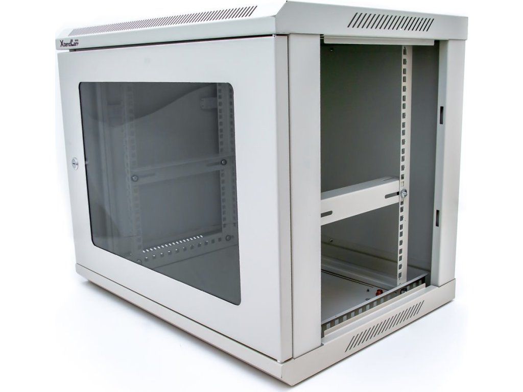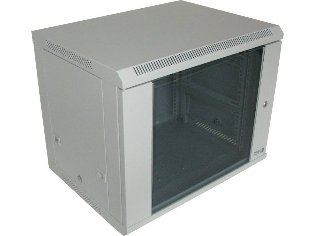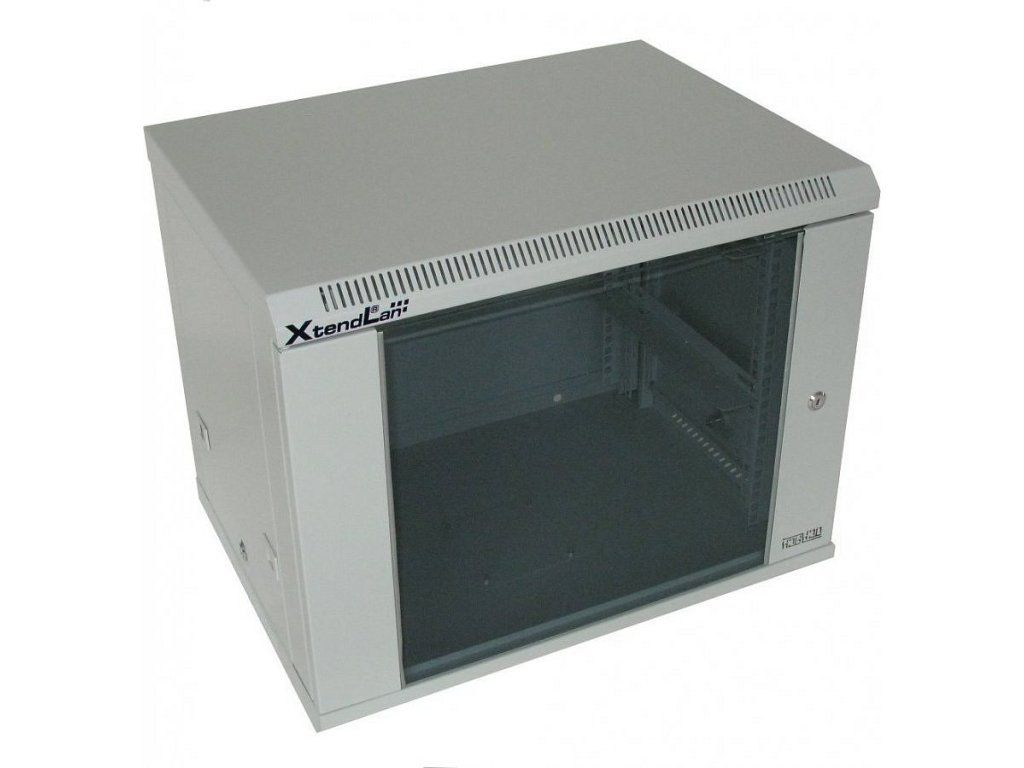XtendLan 9U/600x450, na zeď, jednodílný, skleněné dveře, šedý