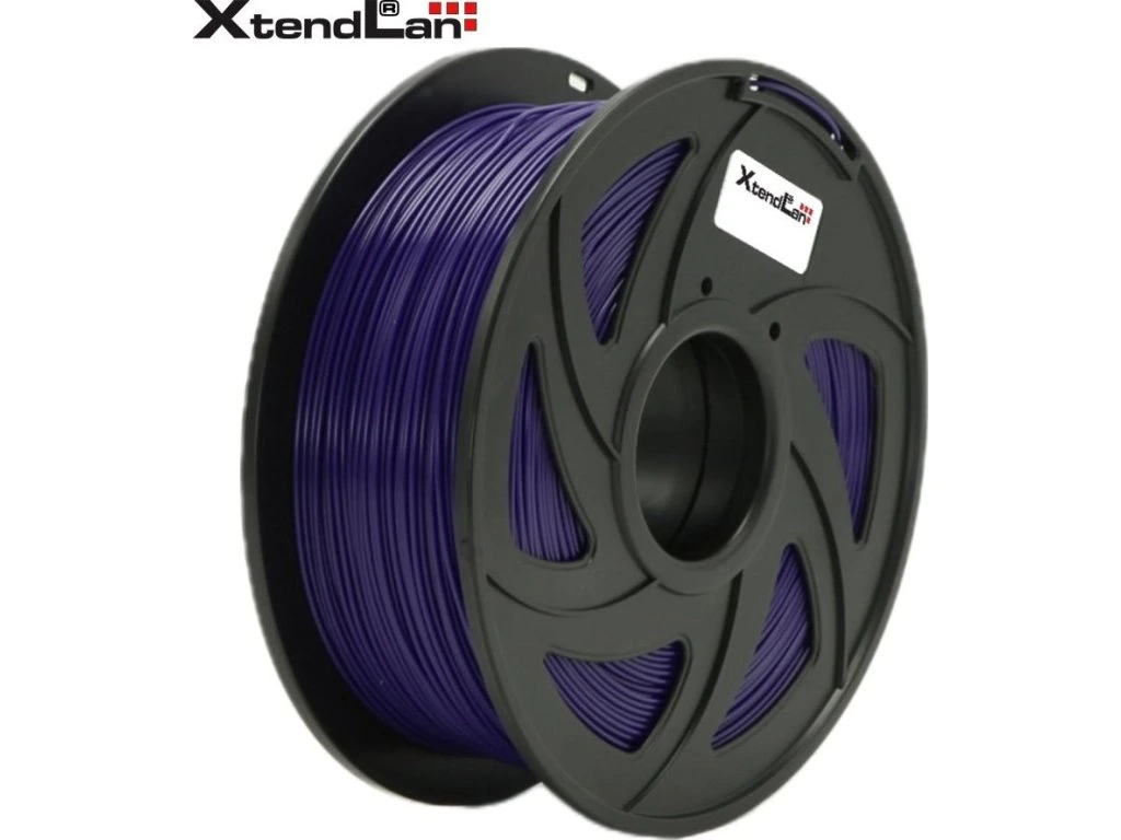 XtendLAN PETG filament 1,75 mm šeříkově fialový 1 kgPlastové vlákno (filament) pro 3D tisk, v návinu na cívce. PET-G (PolyEtylénTereftalát Glykolem modifikovaný) je materiál velmi známý díky plastovým lahvím. PETG v sobě spojuje to nejlepší z vlastností ABS a PLA pro 3D tisk. Jde o pevný a houževnatý materiál. Odolností se materiál blíží polykarbonátům. Vyznačuje se velmi malým tepelným smrštěním a je vhodný pro tisk i velkých objektů. Má velkou odolnost proti rozpouštědlům a kyselinám. Odolává vysokým i nízkým teplotám. Při 3D tisku má velmi dobrou přilnavost k podložce. Vytištěný předmět lze tepelně leštit. Filament je chráněný vakuovým balením a v každém balení je přítomen vysoušecí sáček, který zabraňuje případnému působení vlhkosti na materiál. Dodáváno v kartónovém obalu s okénkem pro kontrolu barevnosti.