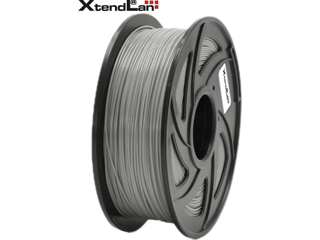 XtendLAN PETG filament 1,75 mm světle šedý 1 kgPlastové vlákno (filament) pro 3D tisk, v návinu na cívce. PET-G (PolyEtylénTereftalát Glykolem modifikovaný) je materiál velmi známý díky plastovým lahvím. PETG v sobě spojuje to nejlepší z vlastností ABS a PLA pro 3D tisk. Jde o pevný a houževnatý materiál. Odolností se materiál blíží polykarbonátům. Vyznačuje se velmi malým tepelným smrštěním a je vhodný pro tisk i velkých objektů. Má velkou odolnost proti rozpouštědlům a kyselinám. Odolává vysokým i nízkým teplotám. Při 3D tisku má velmi dobrou přilnavost k podložce. Vytištěný předmět lze tepelně leštit. Filament je chráněný vakuovým balením a v každém balení je přítomen vysoušecí sáček, který zabraňuje případnému působení vlhkosti na materiál. Dodáváno v kartónovém obalu s okénkem pro kontrolu barevnosti.