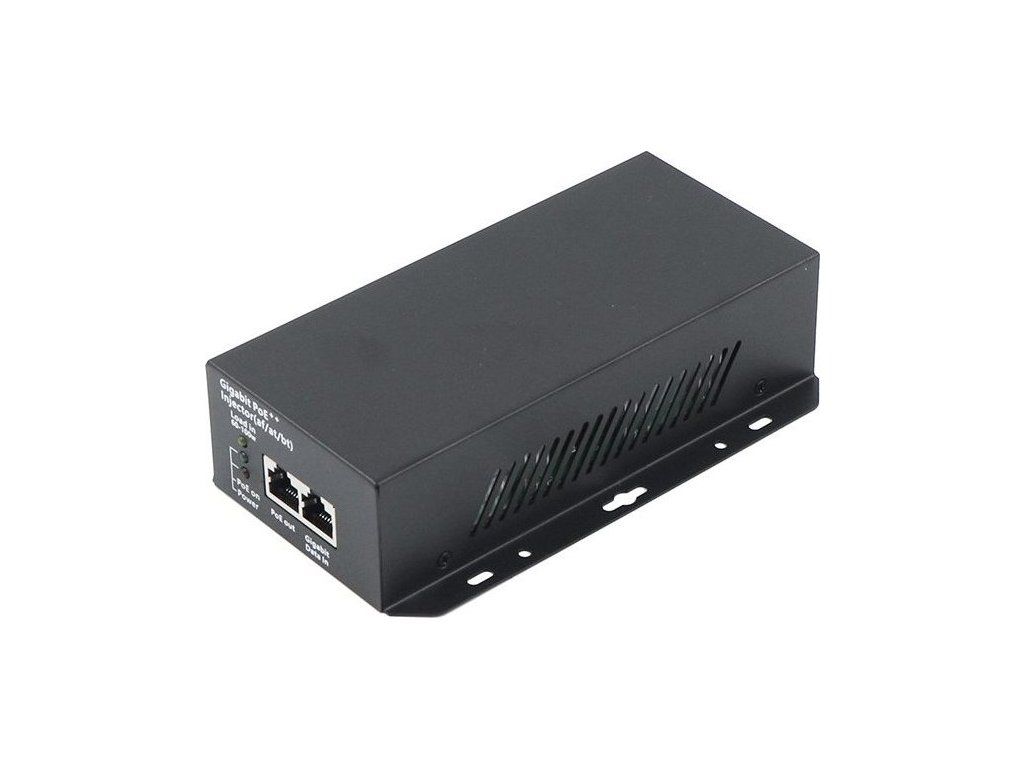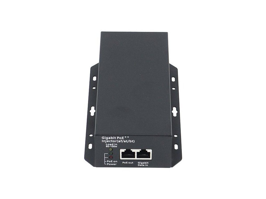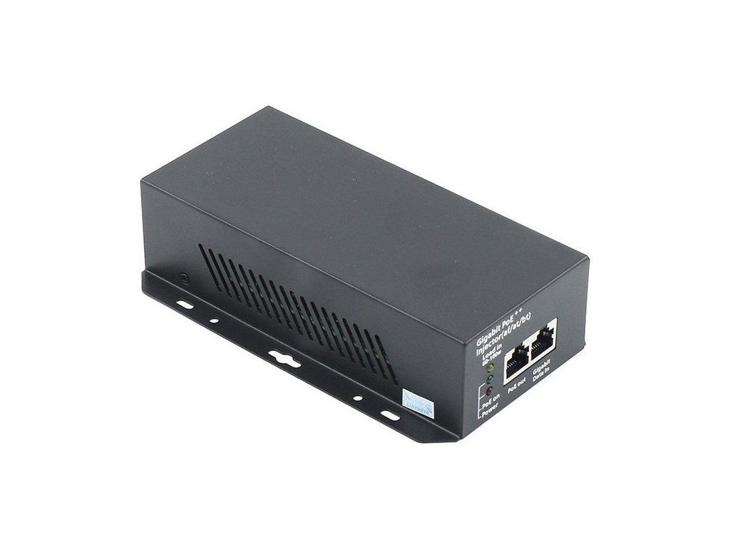 Výkonný PoE++ injektor s výkonem 90 W určený pro náročné síťové aplikace a zařízení vyžadující vysoký výkon.