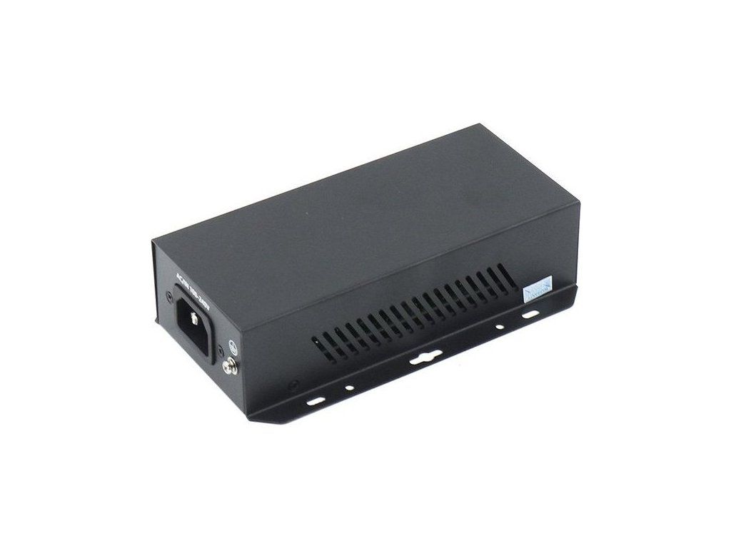 Robustní konstrukce s rozměry 155 × 92 × 42 mm a hmotností 640 gramů zajišťuje spolehlivý provoz i v nejnáročnějších podmínkách. Výstupní výkon 90 W při napětí 52 V a proudu 2,88 A pokryje potřeby téměř jakéhokoliv současného PoE zařízení na vzdálenost až 100 metrů.