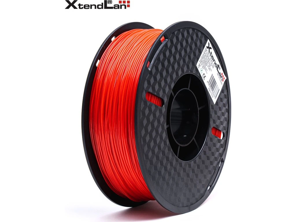 XtendLan TPU filament 1,75 mm červený (průhledný)Plastové vlákno (filament) pro 3D tisk, v návinu na cívce. TPU (Termoplastický polyuretan) je flexibilní materiál, který kombinuje až působivou pevnost s pružností. Vyznačuje se odolností vůči chemickým látkám, zdeformování a opotřebení. Jeho další výhodou je nižší smrštivost a při nízkých teplotách si lépe zachovává pružné vlastnosti. Vytištěný předmět lze ručně brousit a lakovat.