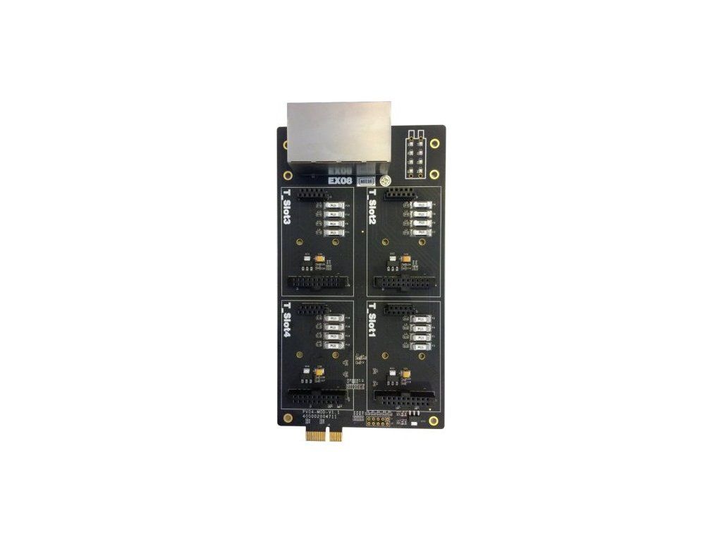 Rozšiřující karta Yeastar EX08 pro použití v kombinaci s ústřednami Yeastar S100 nebo S300. Každá karta obsahuje 4 sloty pro S2, O2, SO, BRI nebo GSM moduly.