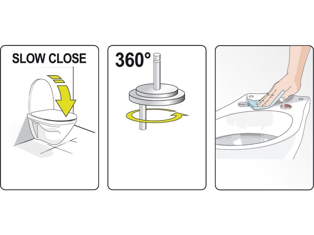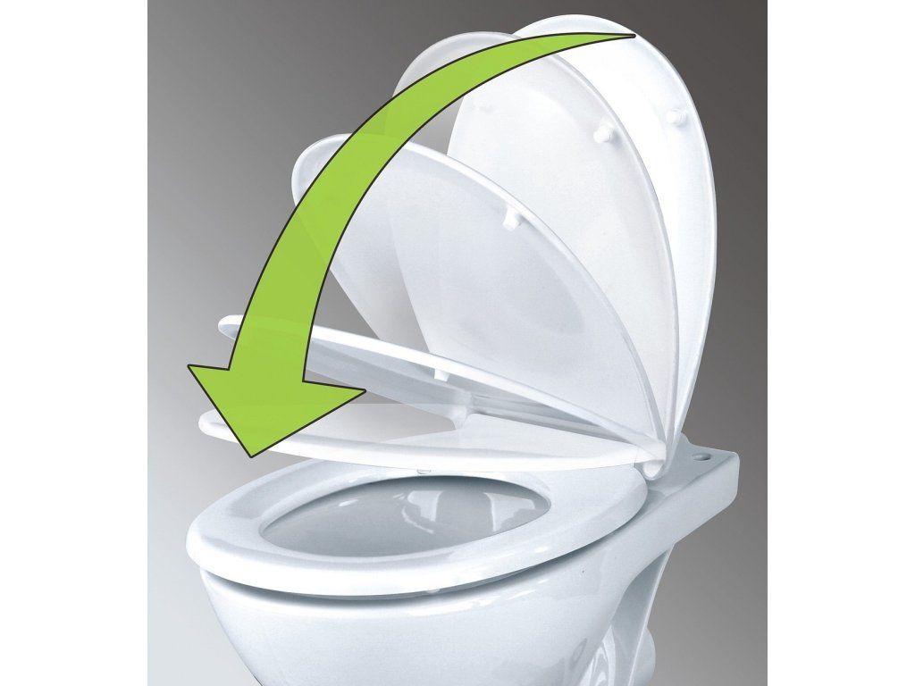 WC prkénko se zpomalovacím sklápěcím mechanizmem, zajišťuje tiché a volné dosednutí prkénka k míse.