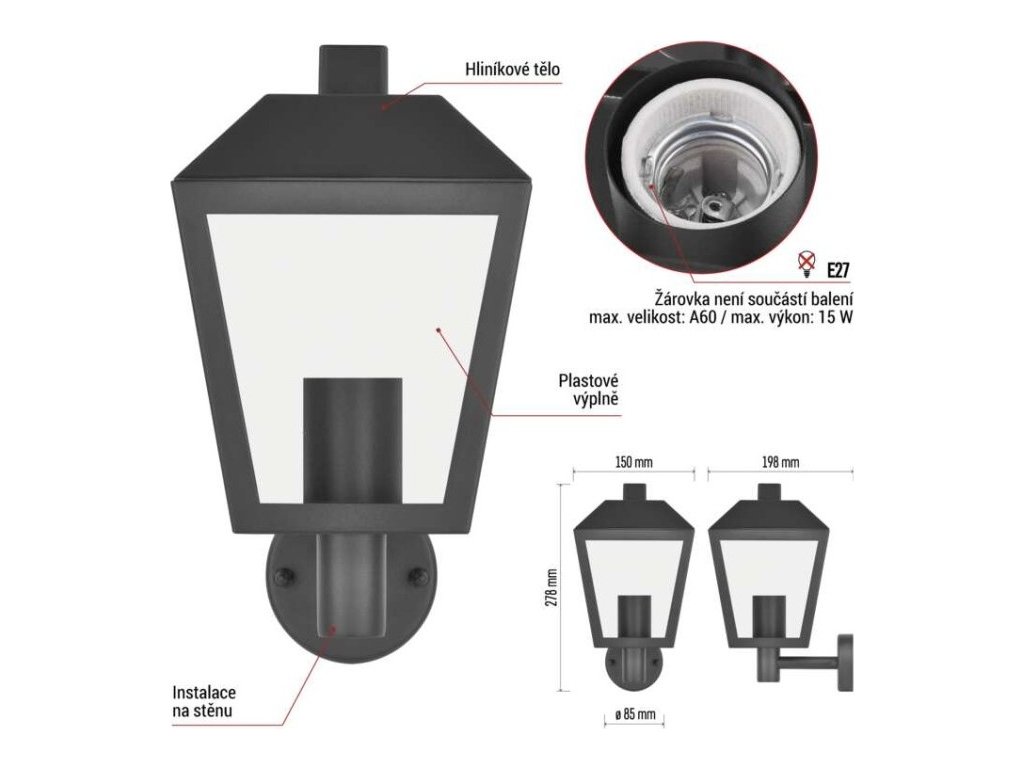 Zahradní nástěnné svítidlo ADENIA, 19,8 x 15 x 27,8 cm, 1 x E27, 15 W