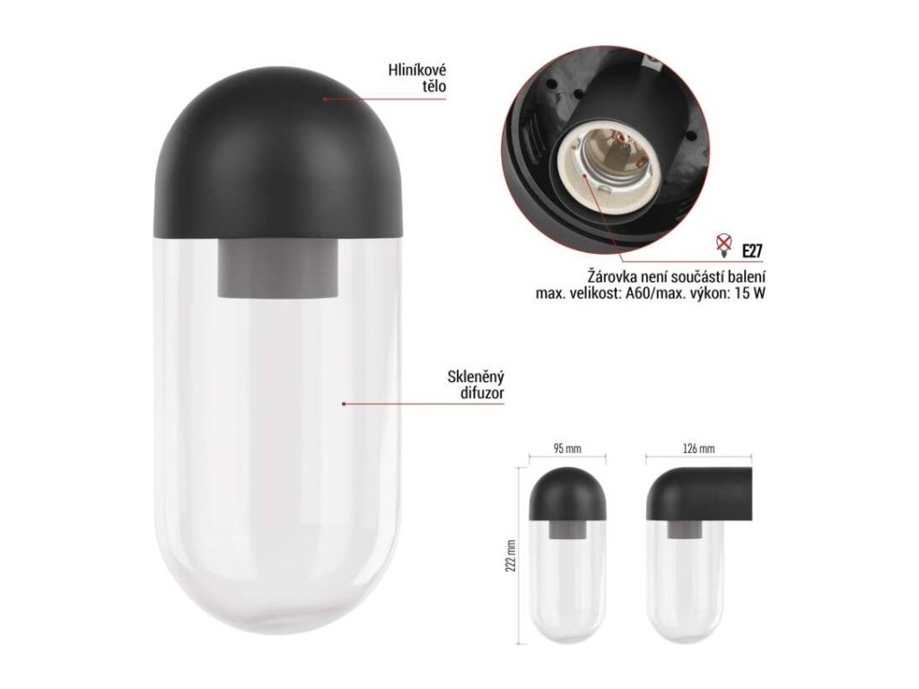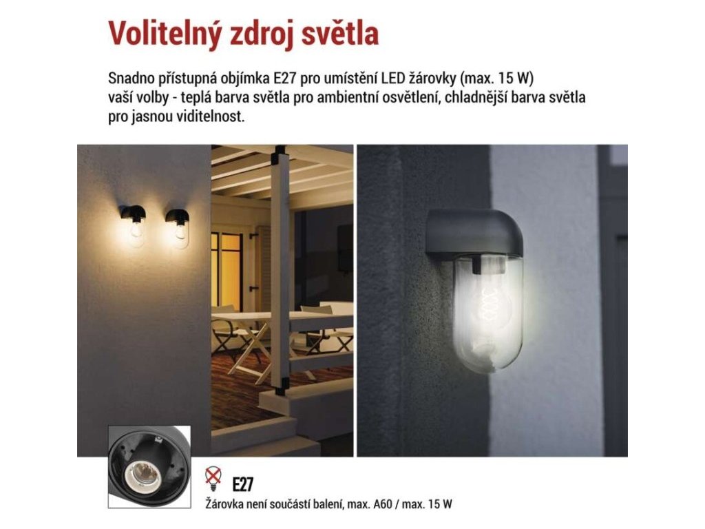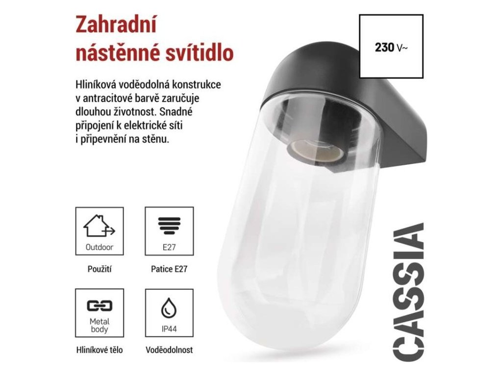Zahradní nástěnné svítidlo CASSIA, 12,6 x 9,5 x 22,2 cm, 1 x E27, 15 W