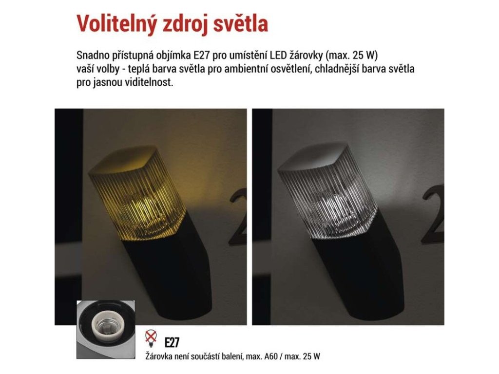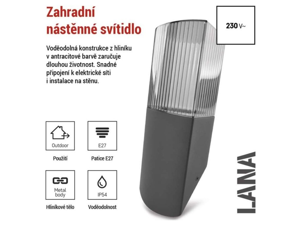 Zahradní nástěnné svítidlo LANA, 10,6 x 8,8 x 28,5 cm, 1 x E27, 25 W