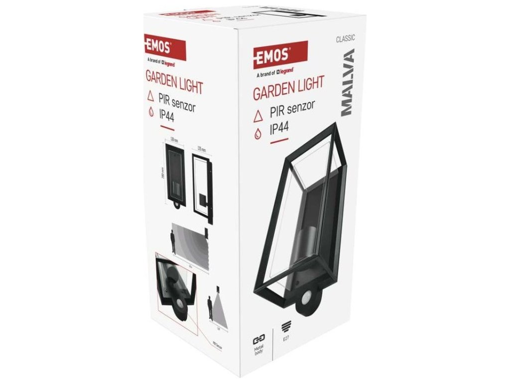 Zahradní nástěnné svítidlo MALVA, čidlo soumraku, 13 x 12 x 28 cm, 1 x E27, 15 W