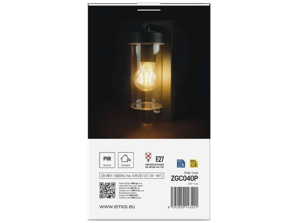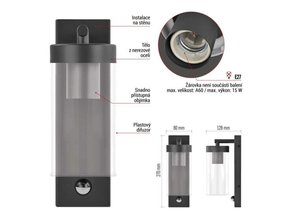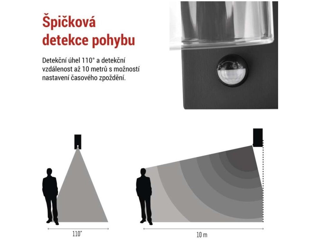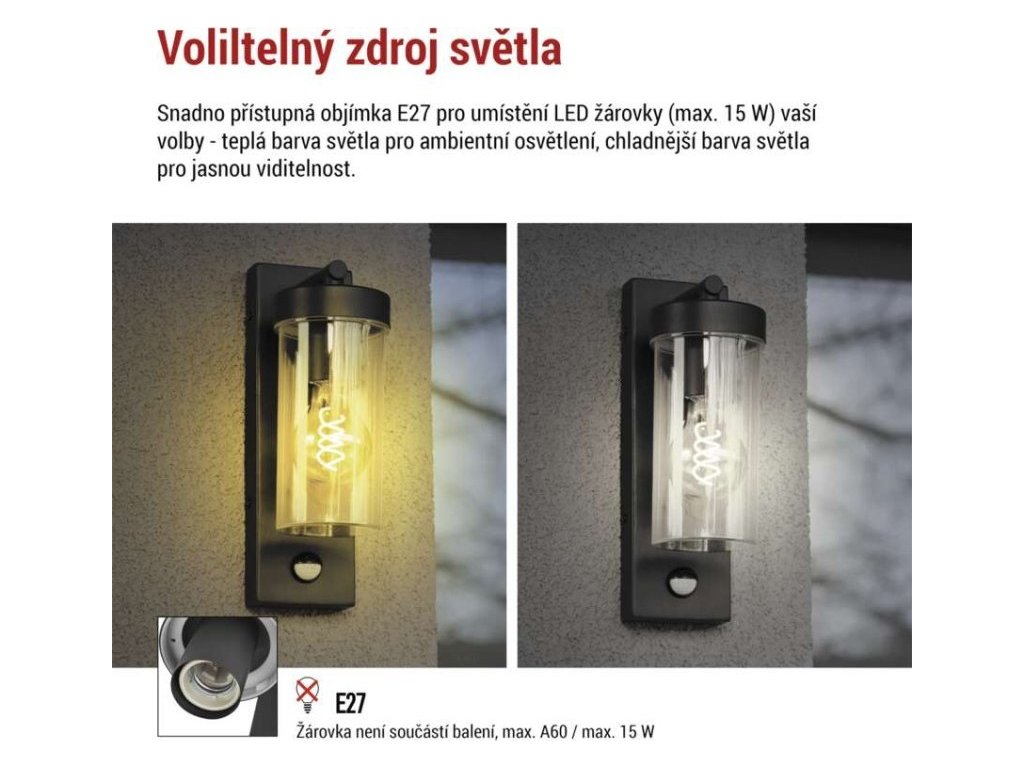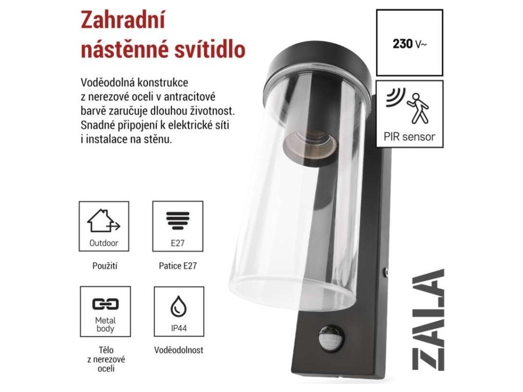 Zahradní nástěnné svítidlo ZALA, čidlo soumraku, 14,5 x 8,9 x 26,2 cm, 1 x E27, 15 W