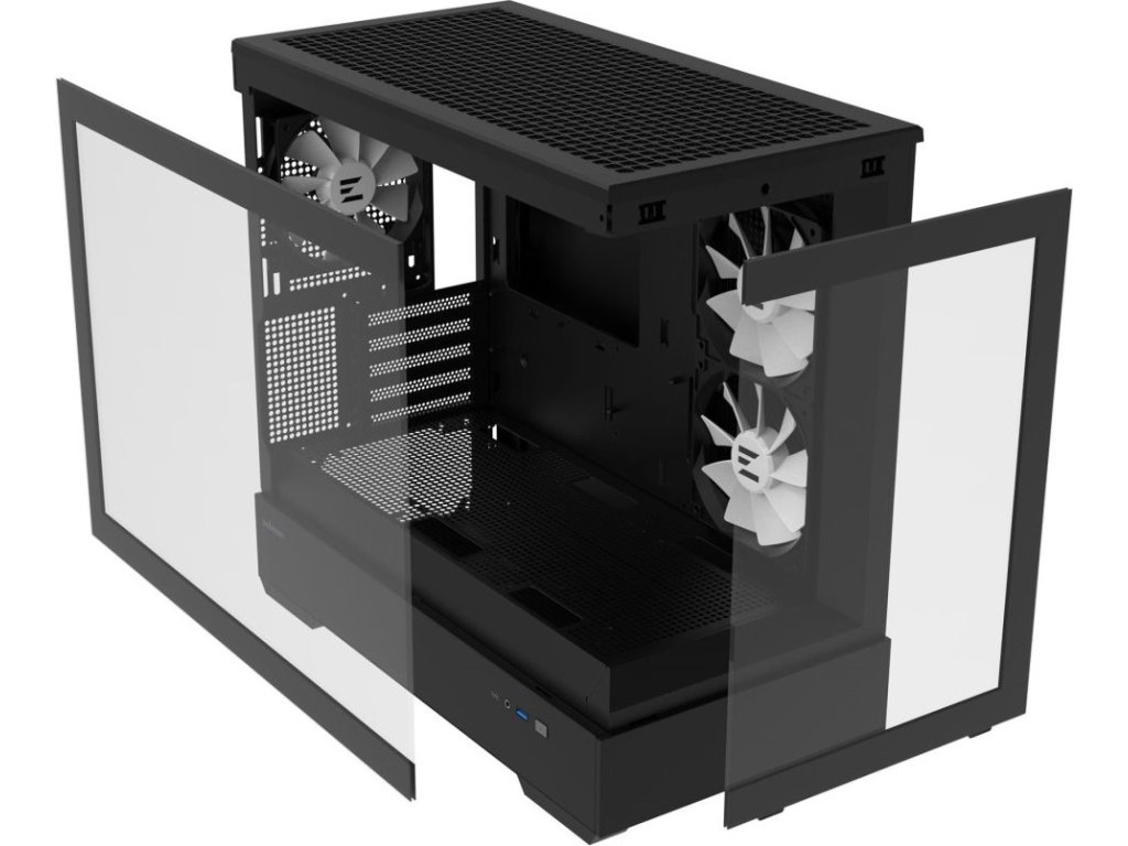 Elegantní počítačová skříň nabízí stylovou prosklenou bočnici i přední panel a prvotřídní kovovou konstrukci. Osazení komponentami je lehké díky intuitivnímu systému správy kabeláže, kabely tedy nikde zbytečně nepřekáží. Skříň je osazena třemi 120mm ventilátory s ARGB podsvícením. Potěší také možnost rozšíření o dalších 6 ventilátorů. Samozřejmostí jsou prachové filtry. Důmyslné řešení umožňuje pohodlné umístění až 360 mm dlouhého výměníku vodního chlazení na horní straně. Ve skříni je dostatek prostoru pro chladič CPU do výšky až 173 mm a grafickou kartu o délce až 420 mm. Na bočním panelu se nachází jeden port USB 3.0, jeden port USB-C a kombinovaný audio port pro sluchátka a mikrofon. Skříň je dodávána bez zdroje.
