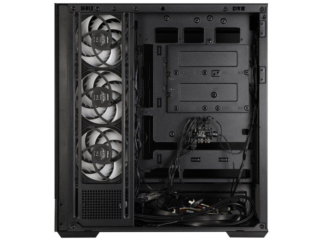Skříň podporuje všechny standardní formáty základních desek včetně ATX, mATX a Mini-ITX a nabízí rotovatelné PCI sloty pro flexibilní instalaci grafických karet ve vertikální nebo horizontální poloze. Pokročilý ARGB systém s kontrolním hubem umožňuje vytváření různých světelných efektů.