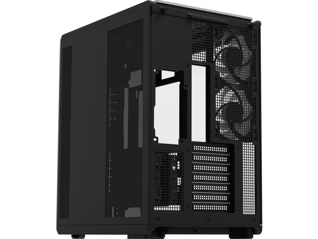 Skříň podporuje až 11 ventilátorů v různých konfiguracích (3× horní, 3× boční, 2× zadní, 3× spodní) pro maximální flexibilitu chlazení. Mesh design na vrchní, spodní i bočních stranách zajišťuje optimální proudění vzduchu.