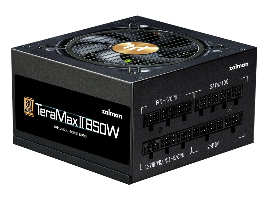 ZALMAN TeraMax II 850 WNapájecí zdroj osazen tichým 120 mm ventilátorem. Účinnost zdroje splňuje certifikaci 80PLUS Gold.
