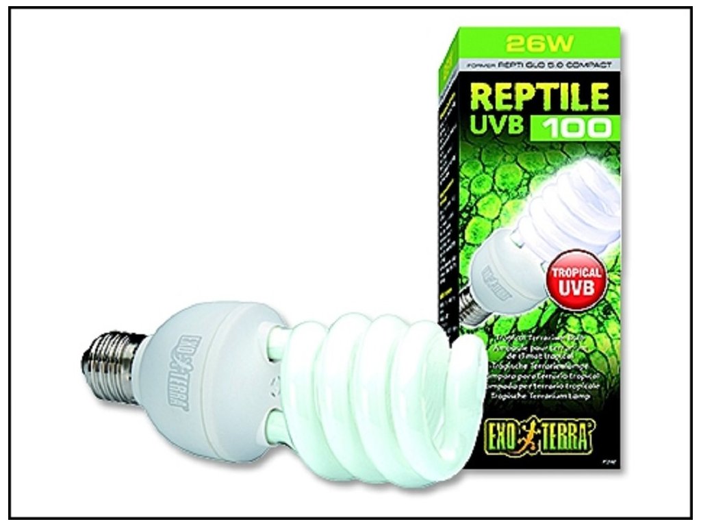 Žárovka Exo Terra Reptile UVB100 vydává optimální úrovně UVB, podobně jako ve stinných prostředích deštných pralesů a dalších tropických lokalitách. Plazi žijící v těchto stanovištích obdrží mírné UV záření v důsledku klimatických podmínek (poměrně vysoká vlhkost, změny počasí, atd).Je ideální pro všechny tropické a subtropické plazy. Má vyšší podíl UVB záření. Účinná až do 40 cm vzdálenosti od žárovky. Nabízí nezbytné UVB záření pro správné využití vápníku. Podporuje chuť k jídlu, aktivitu a rozmnožování díky UVA záření.Závit E27