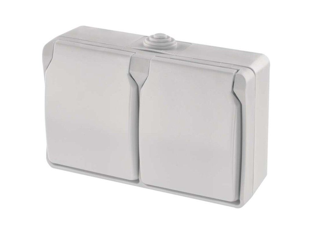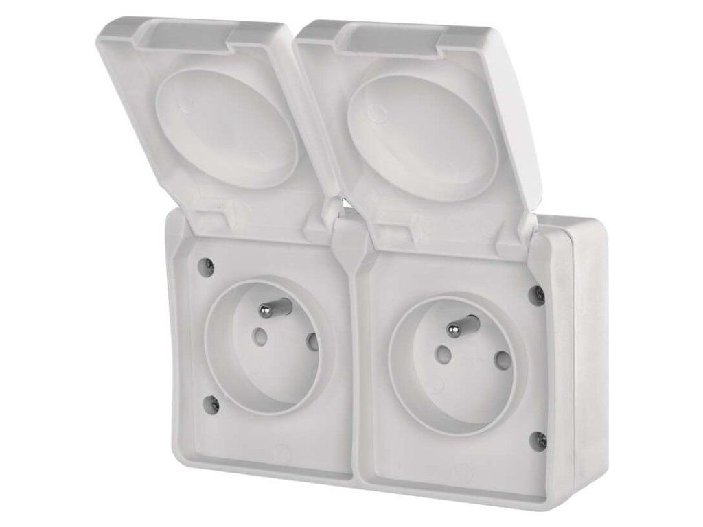 Zásuvka nástěnná dvojitá, bílá, IP44