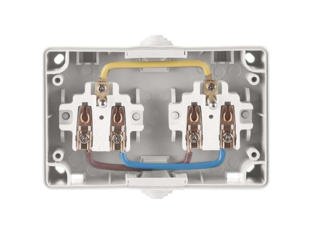 Kvalitní nástěnná voděodolná FRENCH dvojzásuvka s ochraným víčkem. S propojením zásuvek.