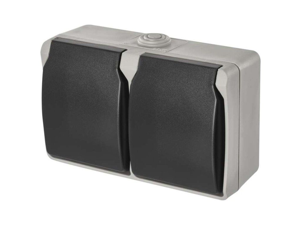 Zásuvka nástěnná dvojitá, šedo-černá, IP44