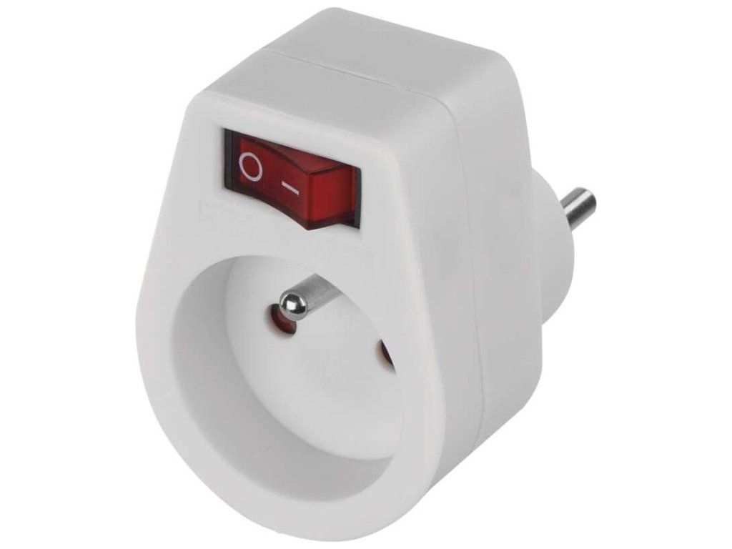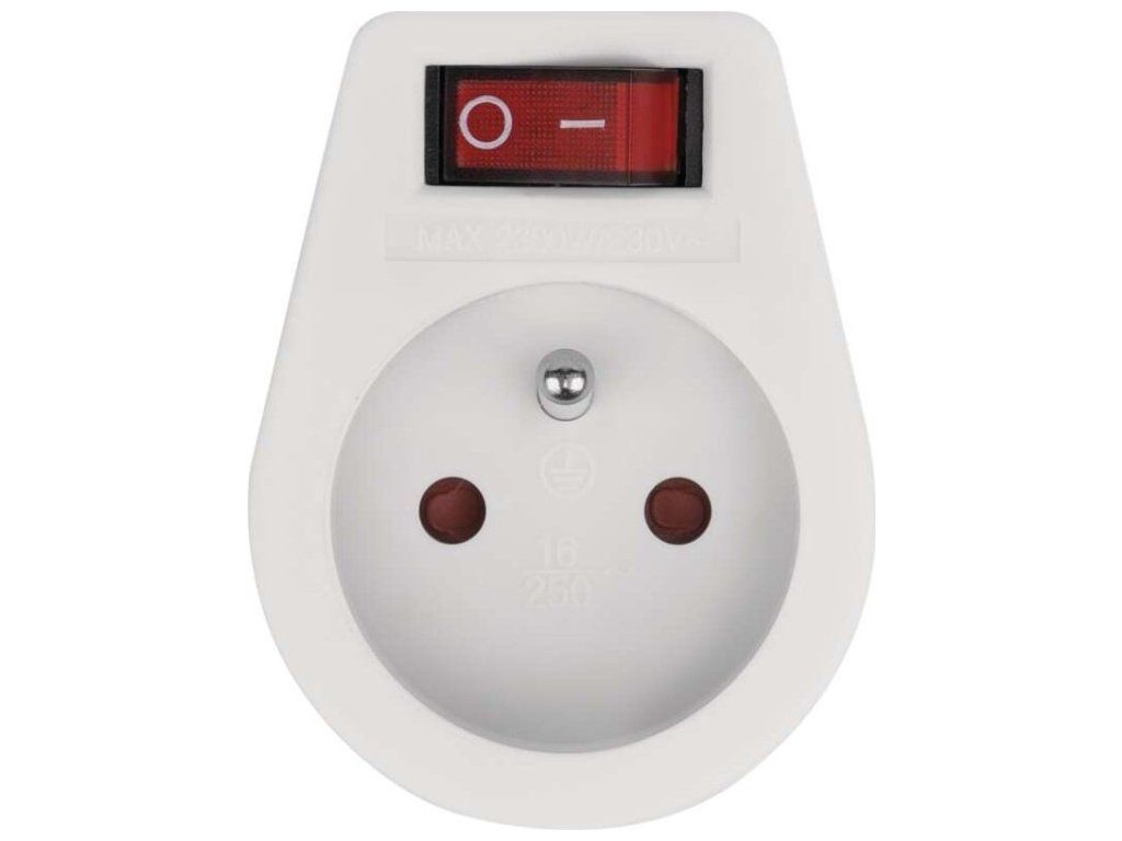 Praktická zásuvka v bílém provedení s vypínačem pro rychlé, snadné a bezpečné odpojení od elektrické sítě.
