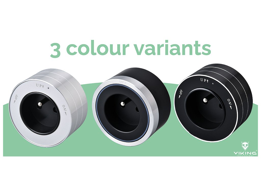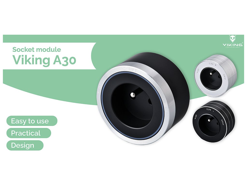 Zásuvkový modul Viking A30 v černé a stříbrné variantě je vybaven LED indikátorem, který po připojení do elektrické sítě svítí modře. Stříbrno-černá varianta obsahuje kruhový LED indikátor, který signalizuje aktivní stav modulu.